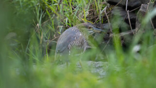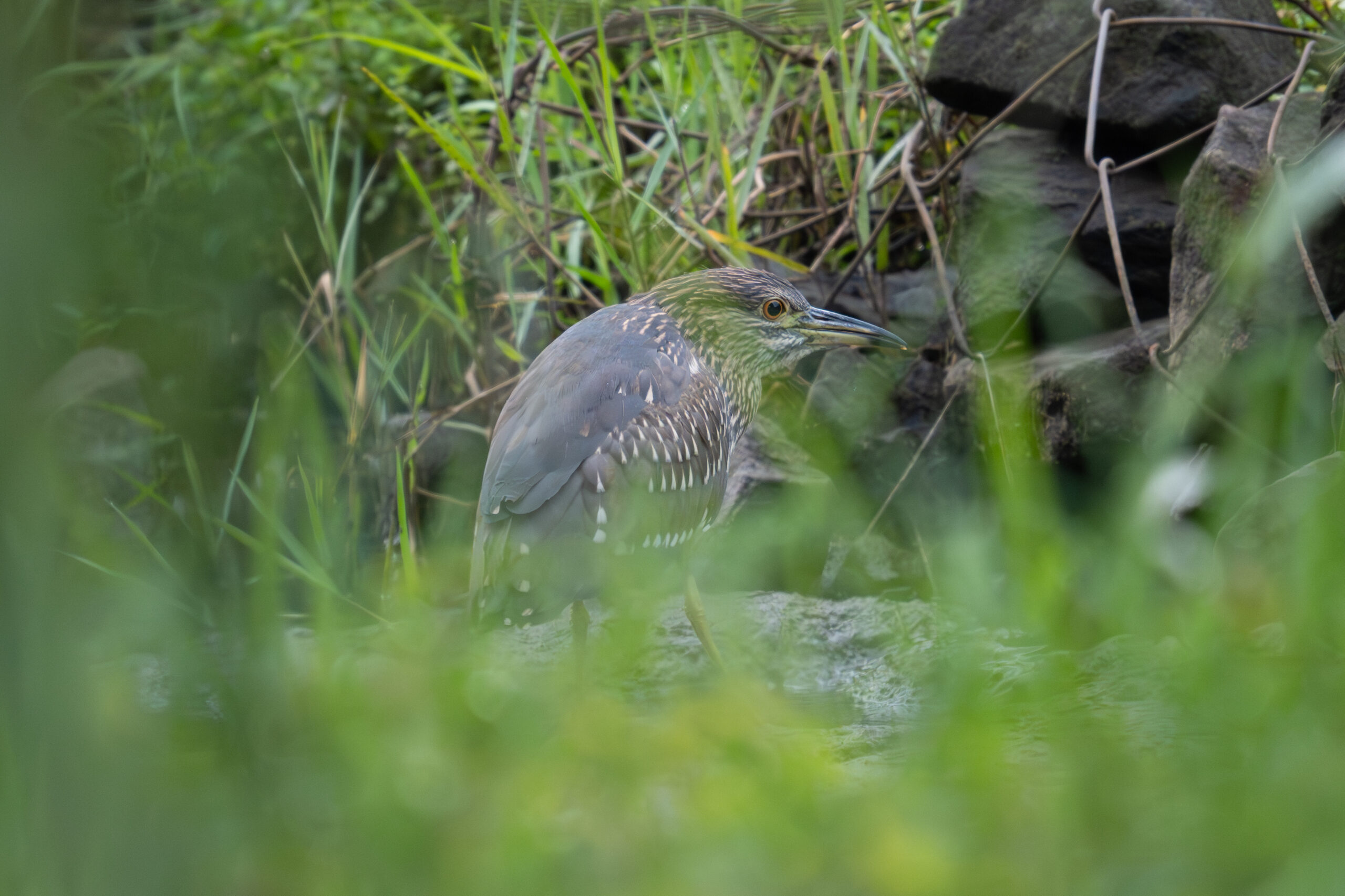 イソヒヨの若鳥さん 探鳥記録 2025.09.28 マイフィールドのパトロールで、その場では珍しい鳥に出会いました。イソヒヨドリです。 まだ若く、羽がオスの色に完全には生え変わっていません。しっぽも短い。 いつものもずっちも元気でした。 沼ではカイツブリのペアを見かけました。これも常連。 最後はいつものホシゴイくんで締めたかったのですが、、、、難易度高杉ー。 こりゃわからん。